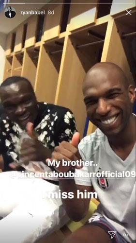 Geçen sezon kiralık olarak formasını giydiği Beşiktaş'a karşı cezası nedeniyle oynayaman Kamerunlu golcü ile birlikte sosyal medya hesabından bir video paylaşan Babel, Aboubakar hakkında "Kardeşim. Onu özledim" ifadesini kullandı.